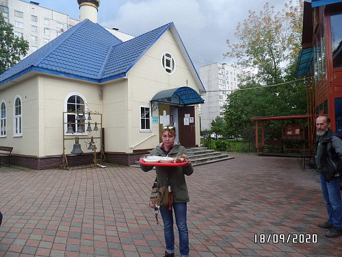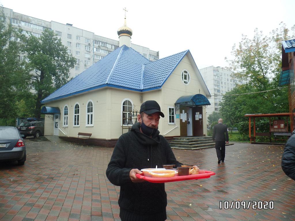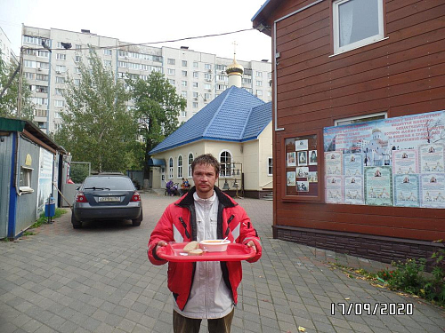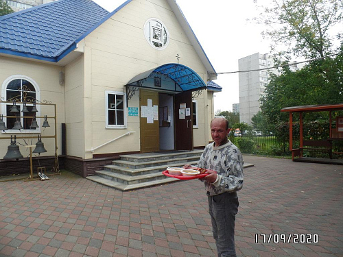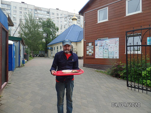 Также по благословению настоятеля, оказывается помощь бездомным людям, нуждающимся в горячей еде. Волонтеры храма ежедневно раздают горячие обеды для бездомных. В день удается накормить 10-18 человек. Еда раздается за территорией храма в одноразовой посуде с соблюдением всех санитарных норм и дезинфекции.