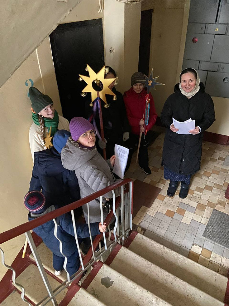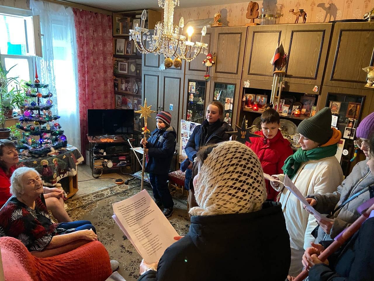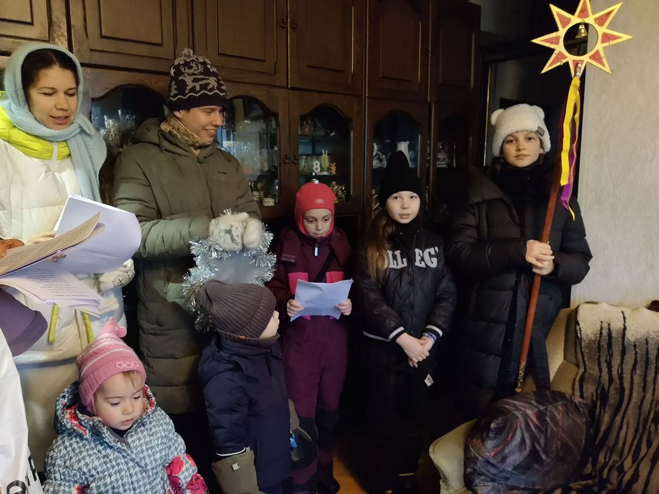 Некоторых братьев и сестер христославы посетили в их домах с праздничными колядками, чтобы поделиться с ними радостью о родившемся Христе и взамен они щедро благодарили мандаринами и шоколадками.