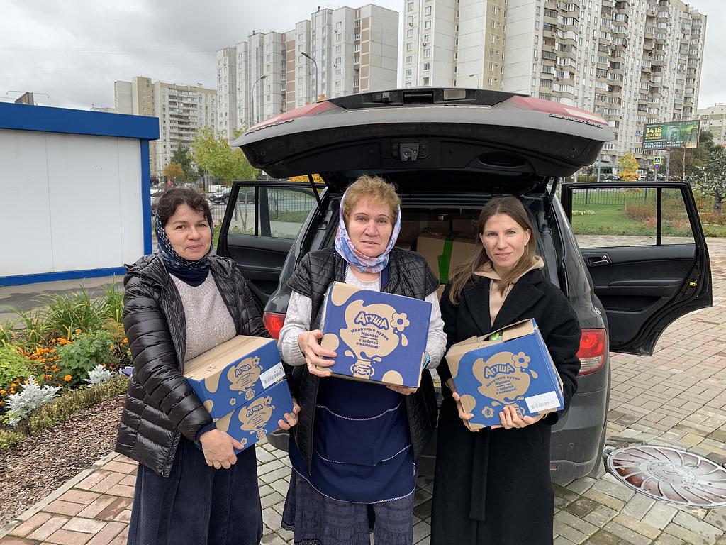 Совместными силами были собраны и упакованы продукты питания, средства личной гигиены, детское питание, вещи и обувь.