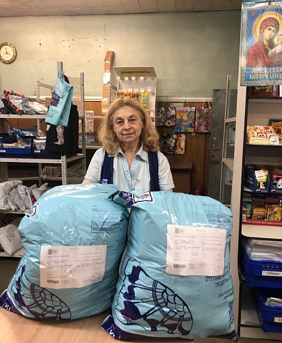 Отправлена церковная утварь, продукты питания, средства гигиены, также новая одежда для детей от «Глории Джинс», общим весом 40кг.