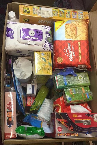 Были отправлены богослужебные книги, ладан, канцелярские товары, развивающие игры, средства гигиены, продукты, детское питание, сладости и пасхальные сувениры.
