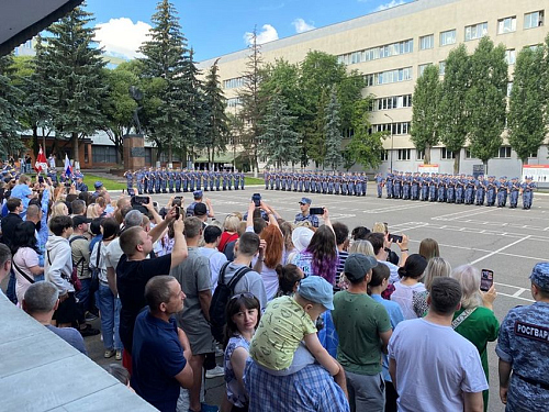 Были внесены знамя России и полка Росгвардии, прозвучал Гимн России.