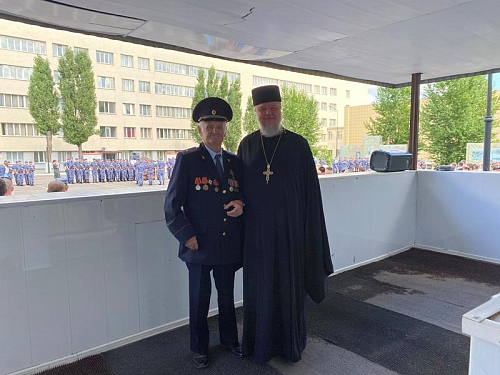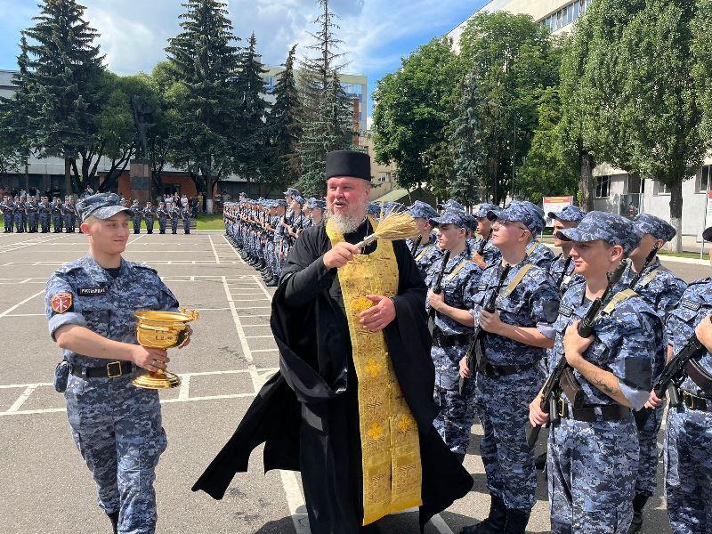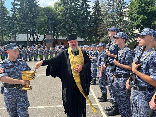 В этот торжественный день радость события разделил с воинами настоятель храма игумен Дамиан (Залетов). Он обратился к военнослужащим со словом поздравления и ободрения, а также окропил воинов и родителей Святой водой.