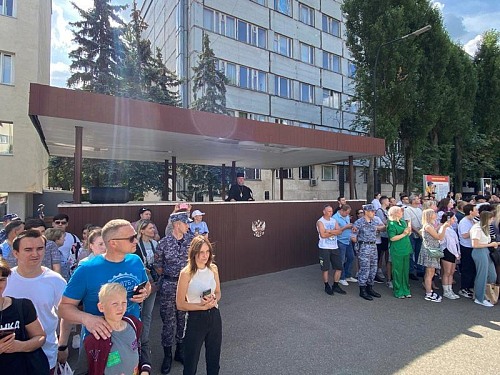 После официальной части прозвучал концерт духовного оркестра Росгвардии, воинская песня и отряды воинов прошли маршем перед трибуной и гостями. Новые воины Росгвардии пообщались с близкими. Настоятель пообщался с руководством полка и воинами.