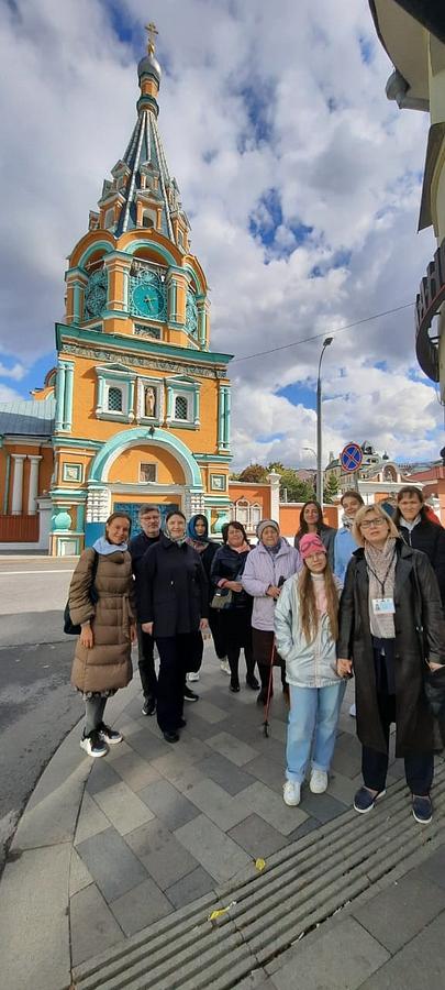 Главной целью стало посещение Третьяковской галереи в Лаврушенском переулке. По ходу прогулки экскурсовод прихода Наталья Алексеевна Брагина рассказывала множество интересных фактов о храмах, которые проходили участники экскурсии.
