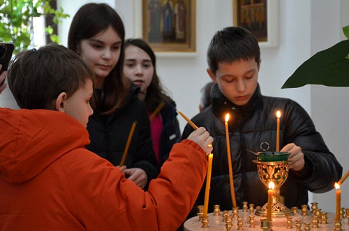 В завершение иерей Иоанн раздал детям свечи, объяснил, как ставить свечу, где можно поставить свечу о здравии или о упокоении, после чего каждый смог самостоятельно поставить свечу и помолиться о себе и своих близких.
