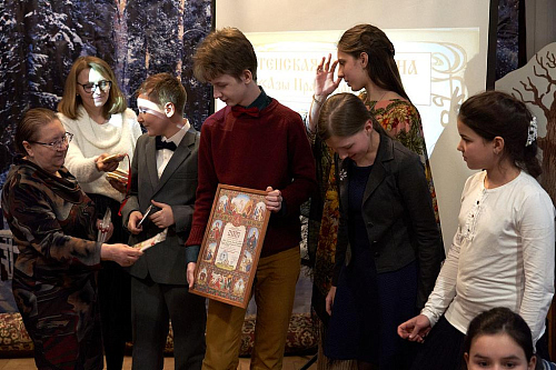 Всем командам были вручены почетные грамоты, памятные подарки и пряничные медали, специально приготовленные к викторине. Грамоты получили и отдельные ребята – наиболее активные участники викторины. В конце игры состоялось чаепитие с теплыми свежевыпеченными блинами.