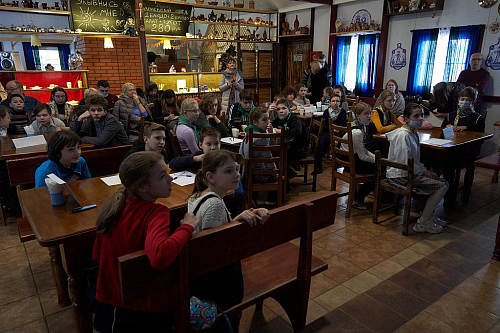 Викторина проходила в уютной трапезной храма Живоначальной Троицы в Старых Черёмушках. Организаторы викторины – ответственный за деятельность воскресных школ Юго-Западного викариатства иерей Александр Мелин и директор Воскресной школы храма Живоначальной Троицы в Старых Черёмушках Гришакова Светлана Ивановна.