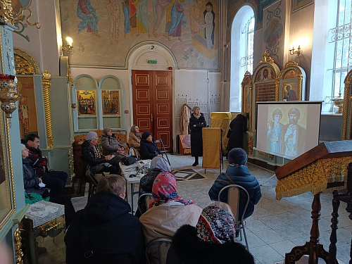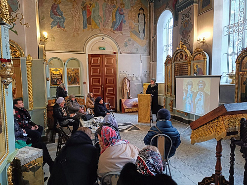 После соборной молитивы «Царю небесный…» вступительное слово произнес иерей Николай Спижавка, клирик храма Великомученицы Параскевы Пятницы в Качалове, после чего Федорова Н.А. провела лекцию, на которой рассказала об историческом периоде древней Руси эпохи правления Святополка Окаянного и Ярослава Мудрого. Отдельно рассматривался вопрос мученической кончины князей Бориса и Глеба. И влияния их подвига на формирование христианского мировозрения на Руси.