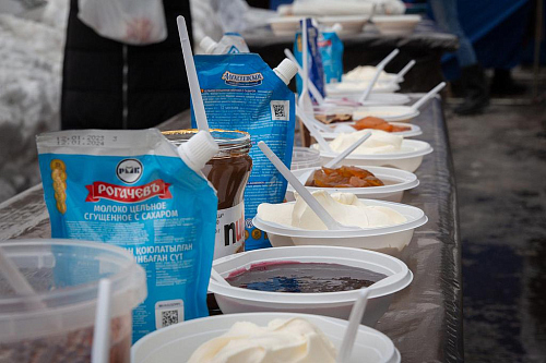 По доброй традиции после Божественной Литургии всех прихожан храма на улице ждали свежеиспеченные блины со сладостями и горячий ароматный чай.