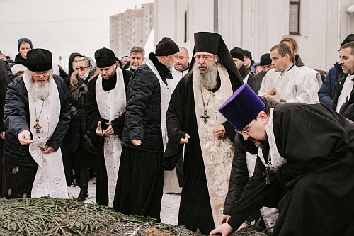 Его Преосвященству сослужили: протоиерей Анатолий Кожа, благочинный Параскево-Пятницкого церковного округа, настоятель храма Великомученицы Параскевы Пятницы в Качалове; архимандрит Мелхиседек (Артюхин), настоятель храмов святых первоверховных апостолов Петра и Павла и Покрова Пресвятой Богородицы в Ясеневе, протоиерей Василий Василевский, настоятель храма Марии Магдалины в Южном Бутово; протоиерей Александр Зорин, настоятель храма в честь Казанской иконы Божией Матери в Теплом Стане; иерей Димитрий Самсонов, клирик храма Святителя Стефана Пермского в Южном Бутово; иерей Михаил Фаворский, клирик храма в честь иконы Божией Матери «Знамение» в Захарьино; диакон Григорий Богданов, клирик храма Великомученицы Параскевы Пятницы в Качалове.