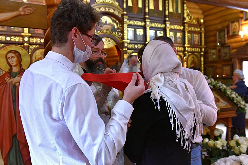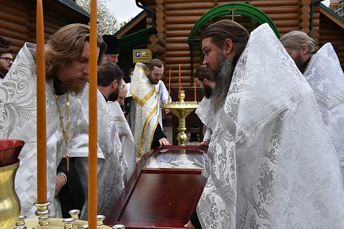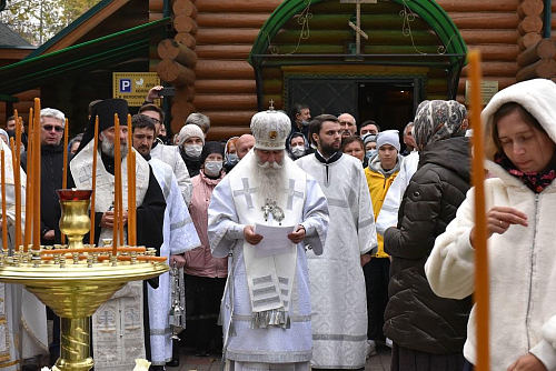 Его Преосвященству сослужили: епископ Скопинский и Шацкий Питирим; протоиерей Николай Карасев, благочинный Андреевского церковного округа, настоятель храма Живоначальной Троицы в Старых Черемушках; архимандрит Мелхиседек (Артюхин), настоятель храмов святых первоверховных апостолов Петра и Павла и Покрова Пресвятой Богородицы в Ясеневе; протоиерей Владимир Соколов, духовник Юго-Западного викариатства, клирик храма Живоначальной Троицы в Старых Черемушках; протоиерей Владимир Быстрый, и.о.настоятеля храма святых равноапостольных князя Владимира и княгини Ольги в Черемушках; протоиерей Алексий Давиденко, клирик храма Вознесения Господня «Малое Вознесение» г. Москвы; иерей Антоний Фукс, клирик храма Всех преподобных отцев Киево-Печерских в Старых Черемушках; иеромонах Феодор (Юлаев), клирик Покровского академического храма МДАиС; иерей Сергий Сулин, настоятель храма святых равноапостольных царя Константина и царицы Елены в Митино; иеромонах Мелитон (Присада), настоятель храма преподобного Сергия Радонежского пос. Долматовский Кинешемской епархии Ивановской митрополии; иерей Александр Мелин, настоятель храма иконы Божией Матери "Отрада и Утешение" на Каховке; иерей Сергий Плужников, клирик храма святителя Николая Мирликийского с. Архипо-Осиповка Новороссийской епархии Кубанской митрополии; иерей Иоанн Омелянчук, настоятель храма Священномученика Ермогена, Патриарха Московского и всея Руси, в Зюзине; иерей Николай Алешин, настоятель храма иконы Божией Матери "Умягчение злых сердец" в Конькове; иерей Алексий Ладченков, клирик храма Живоначальной Троицы в Старых Черемушках; иерей Дионисий Хропот, настоятель храма Рождества Христова дер. Рождествено, Сергиево-Посадской епархии Московской митрополии; диакон Антоний Камальдинов, клирик храма Преподобной Евфросинии, великой княгини Московской, в Котловке; диакон Александр Пышненко, клирик Патриаршего подворья в честь великомученицы Варвары пос. Власиха Московской области.
