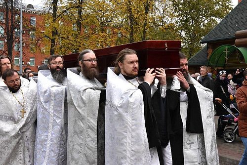 5 октября 2021 года, на территории храма Всех преподобных отцев Киево-Печерских в Старых Черемушках г. Москвы состоялось отпевание новопреставленного иерея Алексия Петухова.