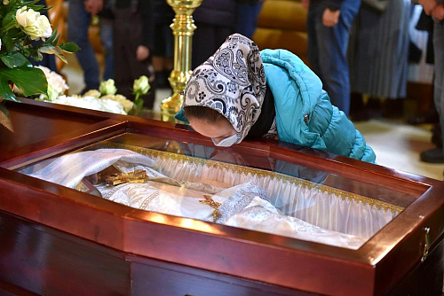По окончании заупокойного Богослужения епископ Феофилакт огласил соболезнование Святейшего Патриарха Московского и всея Руси Кирилла: