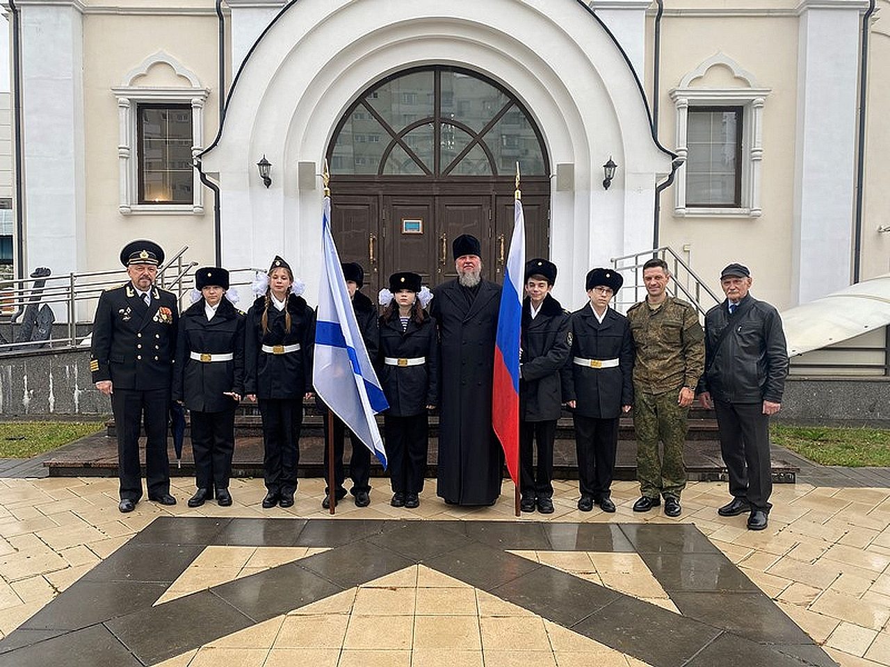 15 октября 2023 года, после праздничного богослужение в храме святого праведного воина Феодора Ушакова в Южном Бутове в день престольного праздника, состоялось построение кадетов-юнармейцем, учащихся школы 1161 у храма Святого адмирала.