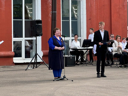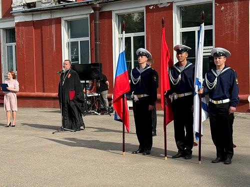 После официальной части знаменная группа колледжа Академии водного транспорта вынесла знамена. Играл духовной оркестр Дворца творчества детей и молодежи.
