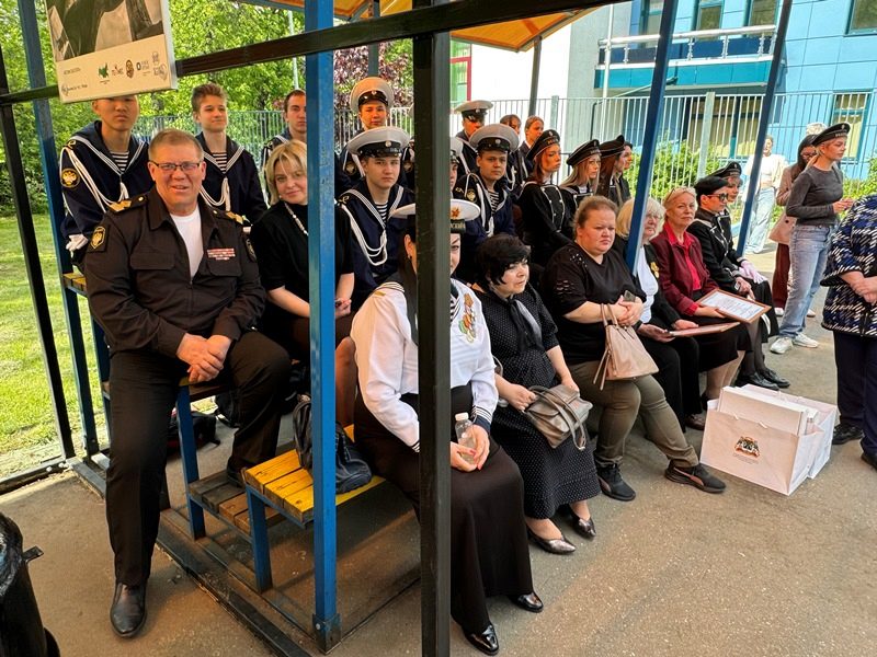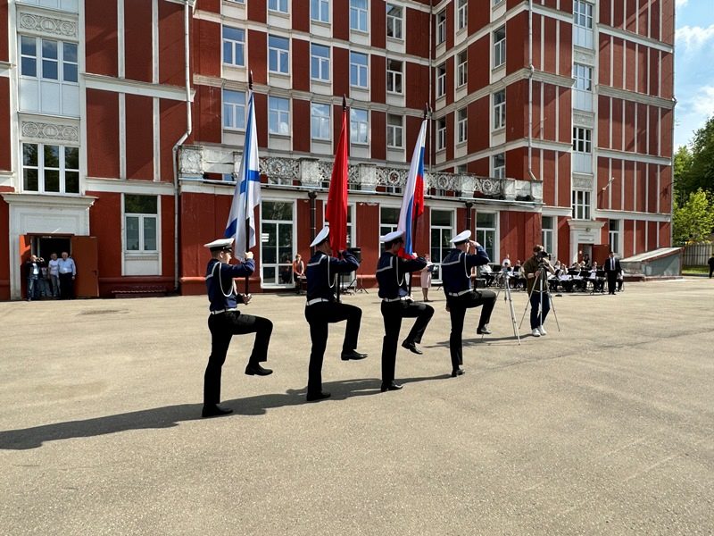 Торжественное построение началось с выноса знамен Российской Федерации, города Москвы и Андреевского флага. Знаменная группа состояла из курсантов колледжа Академии водного транспорта РУТ (МИИТ) им. министра речного флота Л.В. Багрова. Прозвучал Государственный гимн. Большая группа курсантов колледжа АВТ, во главе с начальником колледжа Ивановым Владимиром Ивановичем и Доломан Еленой Владимировной, присутствовала на празднике. Курсанты частые гости Музея и участники его мероприятий.