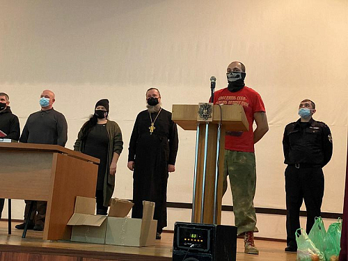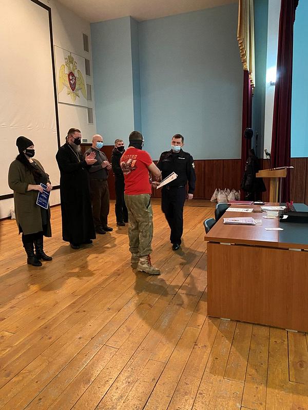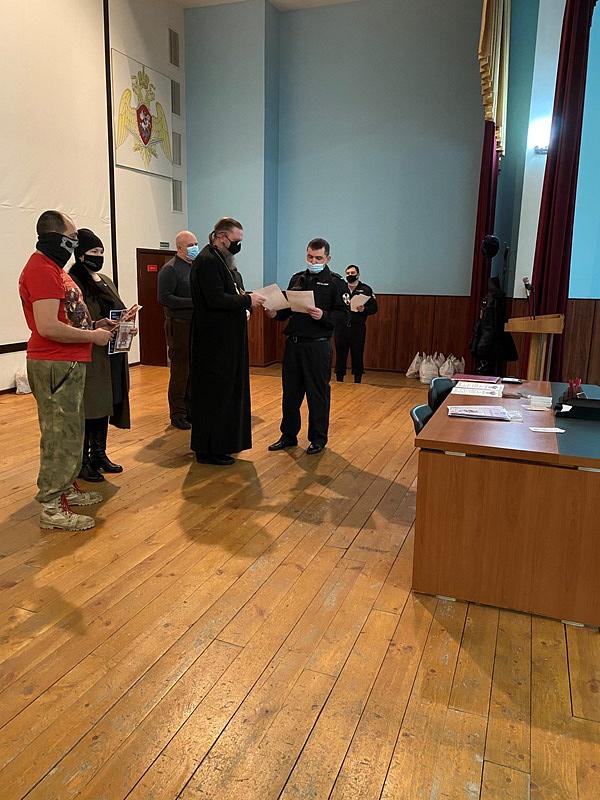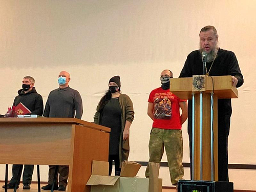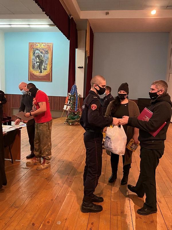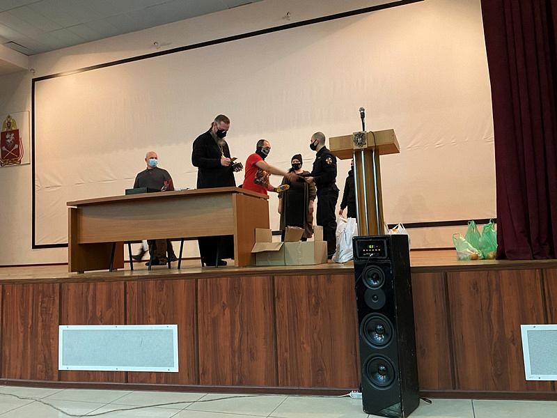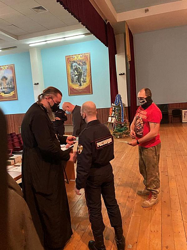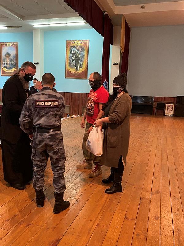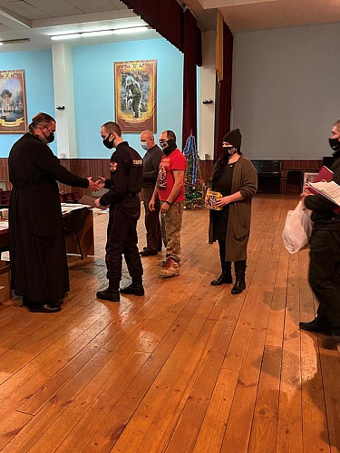 Вместе с продуктовыми наборами настоятель вручал каждому воину экземпляр Нового Завета и икону святителя Николая.