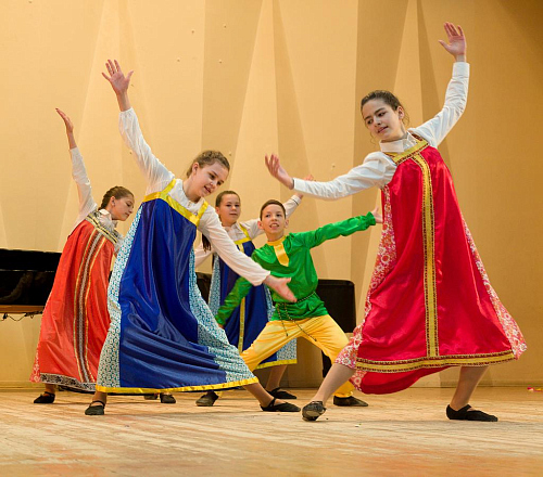 Танцевальную композицию «Русские мотивы» показал коллектив Воскресной школы при храме иконы Божией Матери «Отрада и Утешение» на Каховке.