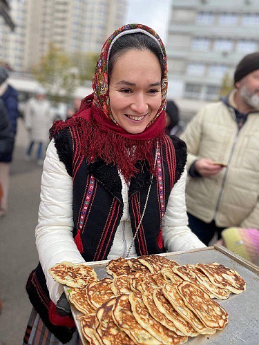 Прихожан угощали русскими блинами с припеком и сбитнем. Приглашенные гости: Голованчиков Дмитрий (игротехник, гармонист), Егоров Виталий (игротехник, реконструктор, тренер по мечевому бою), Заря Каролина (реконструктор), Смирнова Елизавета (фольклорист).