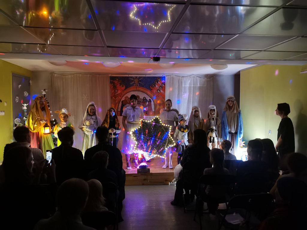 Темой спектакля стало Рождение Христа. Маленькие волхвы и пастухи с радостью принесли в дар Господу все свои таланты, рассказав красивые Рождественские стихи и исполнив музыкальные этюды. На праздник были приглашены педагоги Воскресной школы, прихожане храма и посетители библиотеки.