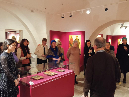 Участники встречи прошли по залам, где хранятся шедевры русской иконописи, рассмотрели иконографию редчайших образцов русской духовной живописи, историю их написания, особенности применения принципа обратной перспективы в иконе, познакомились с биографиями и важнейшими этапами духовного и творческого возрастания известных иконописцев. Образы Спасителя, Богородицы, святых угодников Божиих, выписанные руками талантливых мастеров, стали духовно ближе, а информация и символика древней иконы, запечатленная на старинных досках, объемнее и понятнее.