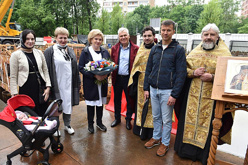 На Богослужении присутствовали Главный врач больницы, профессор, д.м.н., депутат Московской городской Думы Ольга Викторовна Шарапова, генеральный подрядчик Вадим Гатауллин, руководитель ООО «ГенСтройТрест», сотрудники и пациенты больницы, строители и прихожане храма.
