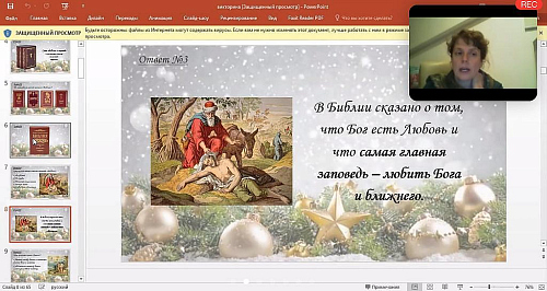 Темами встречи стало обсуждение практических и организационных вопросов проведения онлайн мероприятия «Рождественские старты», разработанного и подготовленного общественными методистами для учащихся 4-х классов общеобразовательных школ ЮЗАО. Мероприятие представляет собой соревнование-квесты между командами на различные темы в рамках модуля ОПК. Проведение мероприятия запланировано на 8,11,15,18 февраля 2021г.