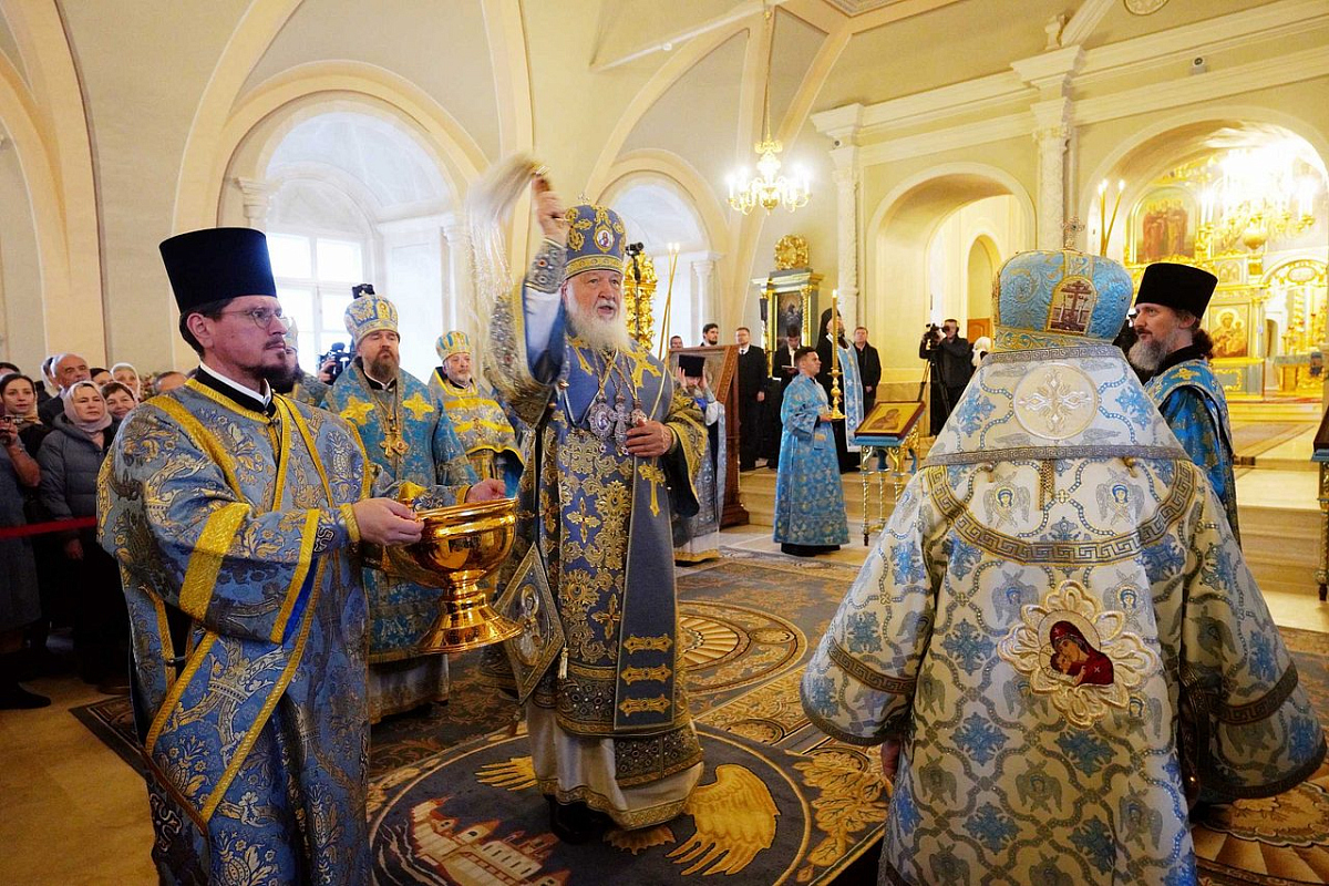 26 октября 2025 года, в Неделю 20-ю по Пятидесятнице, день памяти святых отцов VII Вселенского Собора, праздник Иверской иконы Божией Матери, Святейший Патриарх Московский и всея Руси Кирилл совершил чин обновления храма Успения Пресвятой Богородицы Новодевичьего ставропигиального женского монастыря г. Москвы и Божественную литургию в обновленном храме.