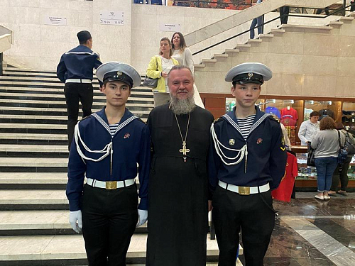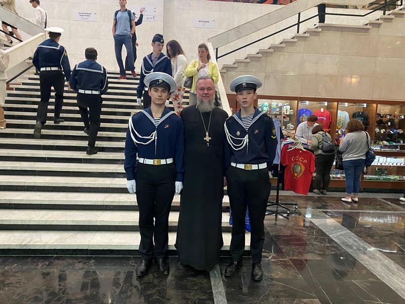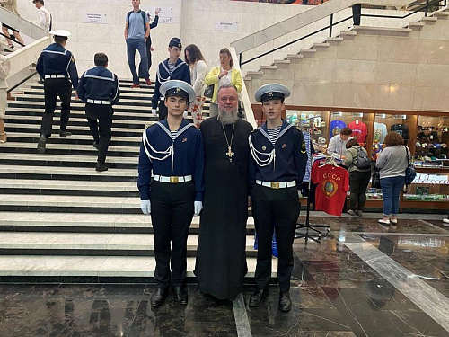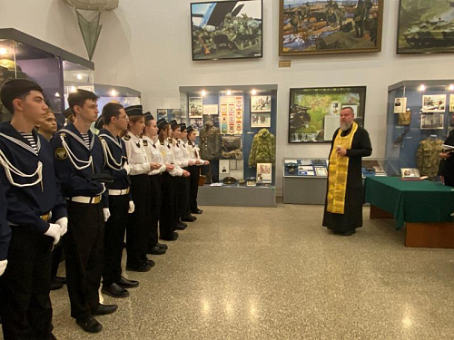 Курсантов АВТ благословил и окропил Святой водой настоятель храма святителя Николая в Тушине, Духовный Центр моряков и речников России, иерей Олег Яньшин.