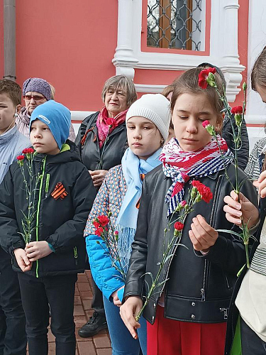 В завершение мероприятия к памятнику были возложены цветы. Присутствовавшие почтили память павших минутой молчания.