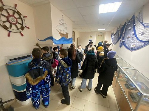 Ребята также смогли осмотреть выставку ФБУ «Музей морского флота». Выставка называется «Штурмуем великий план!» к 85-летию Канала имени Москвы. Выставка организована Музеем морского флота и ФГБУ «Канал имени Москвы» при поддержке Департамента транспорта и развития дорожно-транспортной инфраструктуры города Москвы. О выставке школьникам рассказал сотрудник Музеем морского флота.