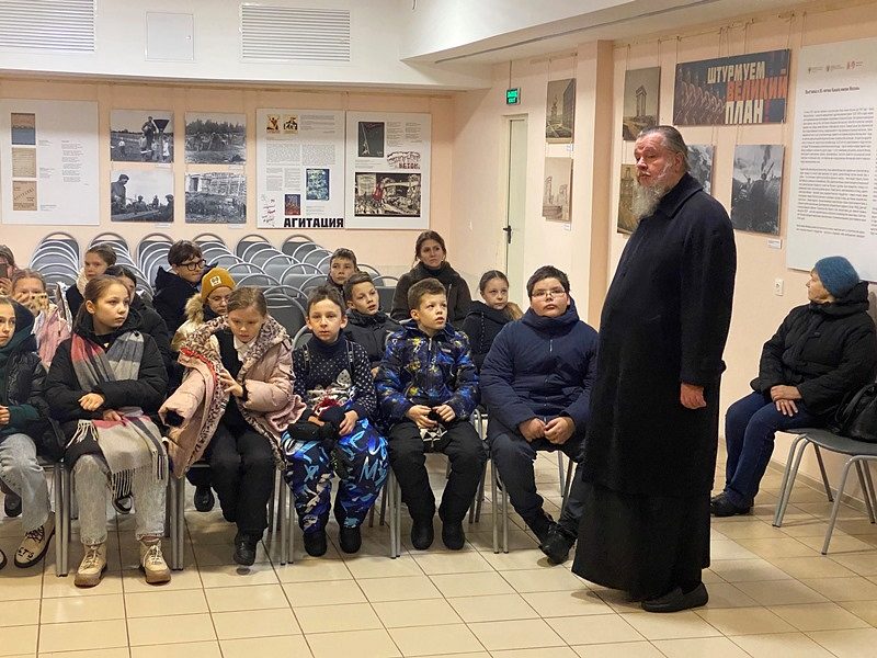 Школьников сопровождала Романенко Людмила Ивановна, руководитель школьного музея школы 1883 и воспитатели.