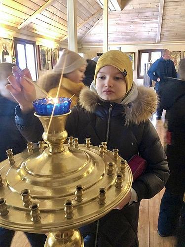 Наталья Александровна рассказала ребятам об истории храма, об его устройстве и значении, о правилах поведения в храме, поведала краткое житие святого покровителя храма священномученика Василия, протоиерея Московского, а также житие других мучеников и чудотворцев. Педагог ответила на все многочисленные вопросы детей. Затем ребята поставили свечи с молитвой и просьбой о своих нуждах.