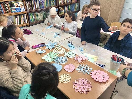 После экскурсии педагогом Светланой Юрьевной был проведён для школьников мастер-класс. Дети и даже взрослые с удовольствием и вдохновением созидали свои поделки. Все они получились совершенно разные по цветовым сочетаниям, композиции и технике. Цель мастер класса - это сплочение учащихся, приобщение к совместному творчеству и развитие фантазии.