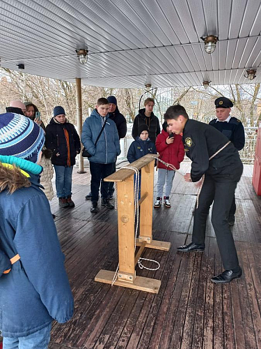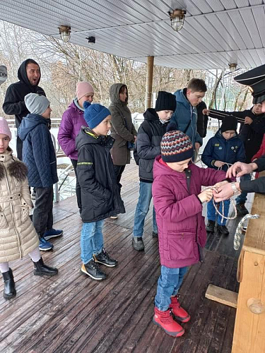Проделав двухчасовой путь из Южного Бутова до Химкинского водохранилища, ребята и взрослые были радушно встречены студентами Колледжа Академии водного транспорта РУТ. Они провели экскурсантов на инструктаж по вязанию морских узлов на скорость на «банке», после чего всем желающим дали возможность попробовать себя в опыте вязания узлов.