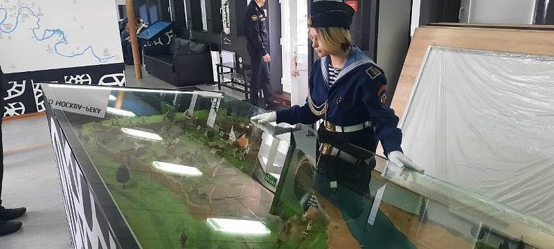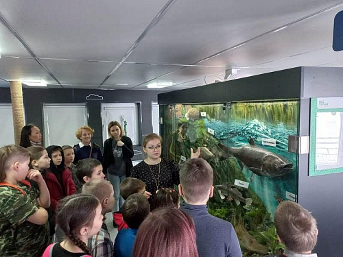 Пройдя в макетный зал, преподаватель Шевченко Т.С. рассказала присутствующим, что такое устье реки, притоки, сколько рек впадает в Москву-реку и другие интересные факты о Москве-реке, после чего в макетном зале детям были представлены образцы местной флоры и фауны.