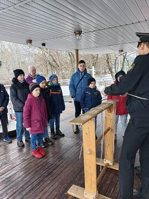 9 апреля 2022 года учащиеся Навигацкой школы при храме святого праведного воина Феодора Ушакова в Южном Бутове приняли участие в экскурсии на теплоходе «Московский эколог», на котором развернул свои экспозиции музей Москвы-реки.