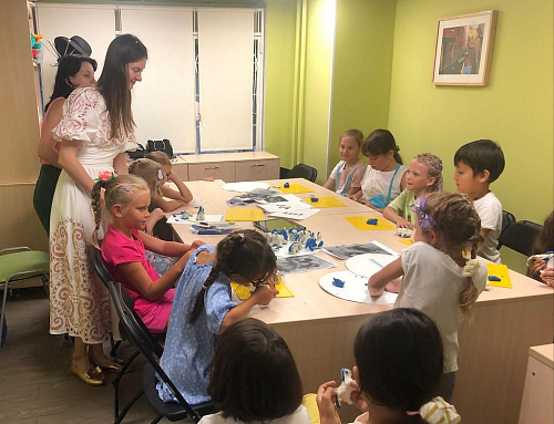 В ходе занятия ребята познакомились с русским народным промыслом в технике гжель, отличительным признаком которого является бело-голубая керамика.