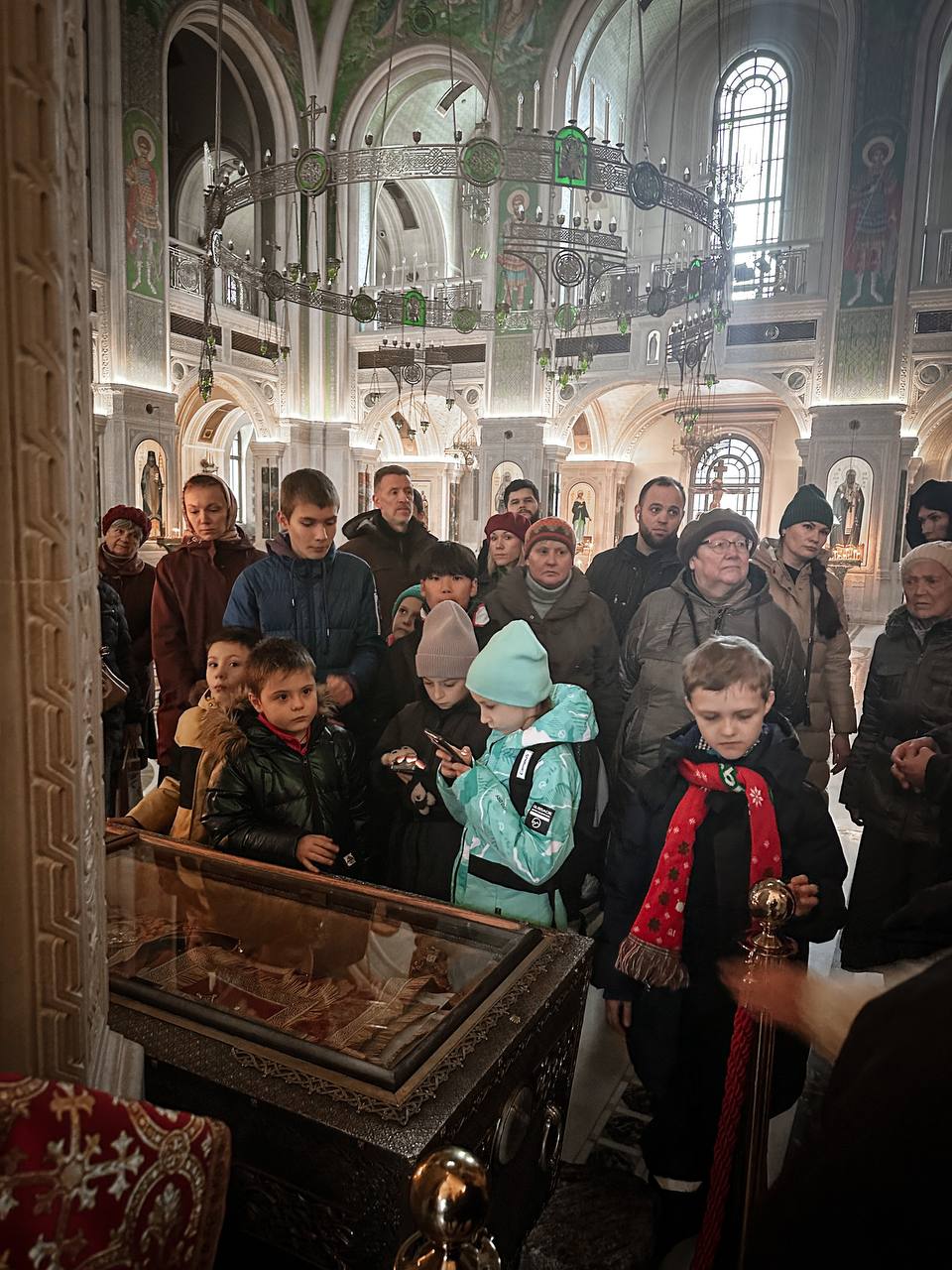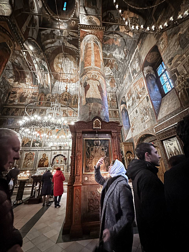 Прихожане познакомились с историей и архитектурой древнего монастыря, открыли для себя красоту фресок и икон Храма Сретения Владимирской иконы Божией Матери, Храма Воскресения Христова и Новомучеников и Исповедников Церкви Русской, услышали историю Туринской плащаницы, приложились к святыням монастыря.