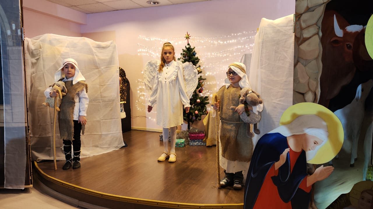Учащиеся школы выступили перед родителями, священниками и преподавателями в праздничном спектакле "Замёрзшее время", в котором дружба и вера позволяют преодолеть любые препятствия, а рассказ о Рождестве Христове растапливает даже самые холодные сердца. После спектакля к детям пришёл Дед Мороз, повеселился с ребятами и подарил им подарки. А затем был торжественный обед и импровизированный концерт, где дети продемонстрировали свои музыкальные способности.