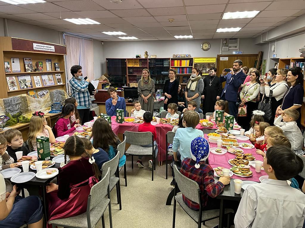 Многие годы приходская Рождественская ёлка проходит в помещении библиотеки №179, сотрудники которой с удовольствием и теплотой принимают детей. Во время трапезы сотрудники библиотеки вручили всем детям памятные сувениры.