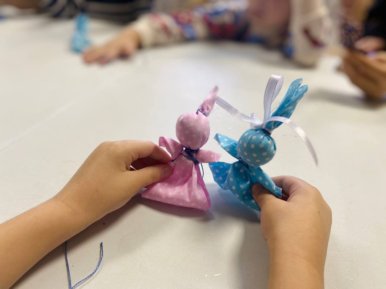 После посещения музея был организован мастер-класс по изготовлению игрушки из ткани, без иголки и шитья. Ребята смастерили зайчика из ткани с помощью нитки.