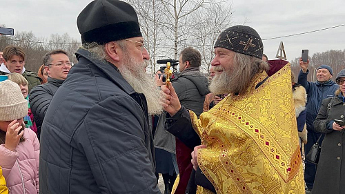Праздничный молебен совершили протоиерей Феодор Конюхов, инициатор строительства храма, и архимандрит Мелхиседек (Артюхин), настоятель храмов святых равноапостольных Петра и Павла и Покрова Пресвятой Богородицы в Ясеневе г. Москвы, почётный член попечительского совета Фонда Архангела Михаила.