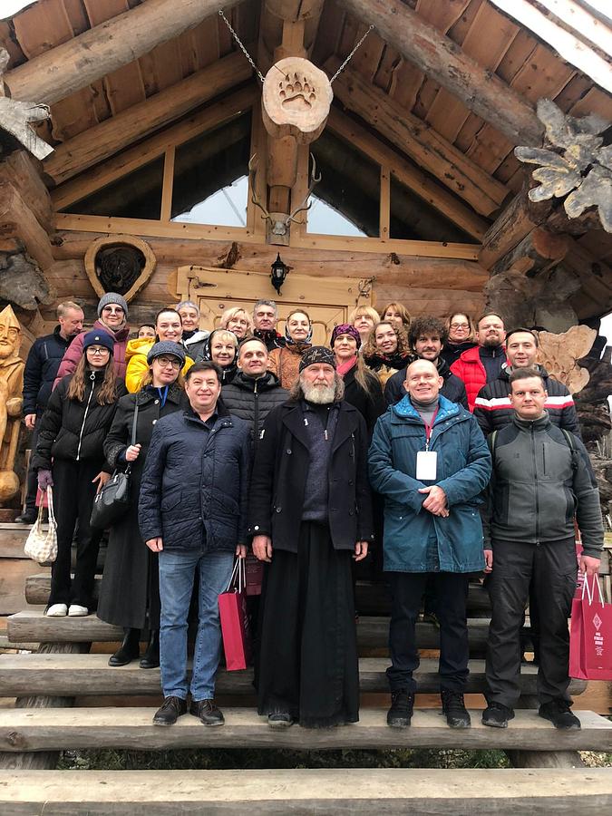 После трапезы все участники были приглашены на экскурсию по Деревне. Провел экскурсию протоиерей Федор Конюхов, известный русский путешественник и художник. Он родился в 1951 году и за свою жизнь совершил несколько кругосветных и трансатлантических путешествий, побывал в одиночку на Южном и Северном полюсах, поднялся на Эверест, прославился на весь мир бесстрашием путешественника-мореплавателя.