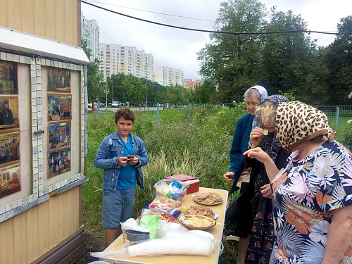 14 августа 2023 г. молодёжь храма священномученика Владимира, митрополита Киевского и Галицкого в Южном Бутово, под руководством приходского социального работника организовала чаепитие с медовыми блинчиками для пожилых прихожан.