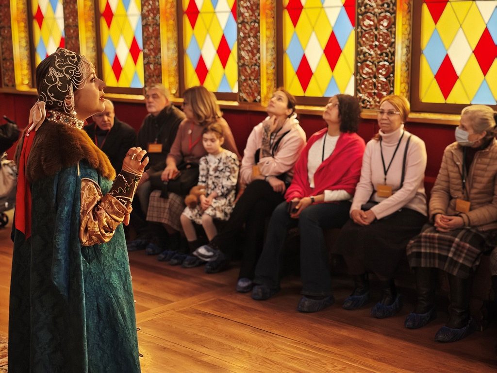 Особое внимание участников привлекла экскурсовод, которая с высоким артистизмом и вдохновением рассказывала о жизни во дворце, заинтересовывая как взрослых, так и юных слушателей.