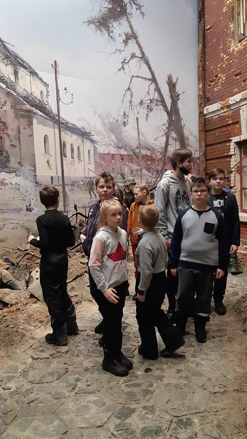 Продолжением познавательной экскурсии стали залы трехмерной панорамы, рассказывающие об истории Великой Отечественной войны, трудностях борьбы и величии Подвига через судьбы людей.