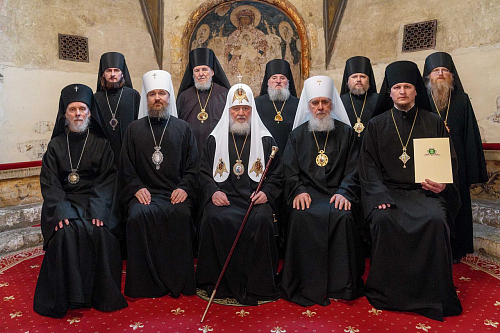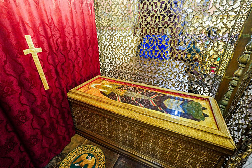 По прибытии в собор Святейший Владыка поклонился мощам святителей Филиппа и Ермогена.