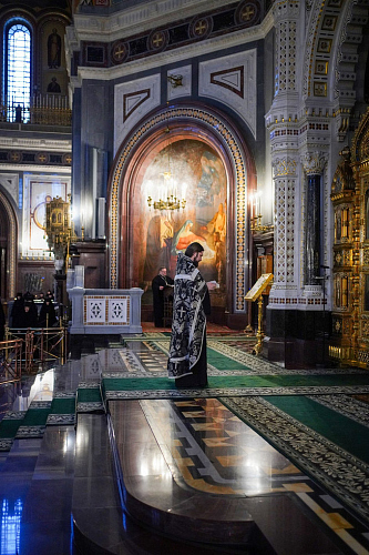 Утром 5 марта 2025 года, в среду первой седмицы Великого поста, Святейший Патриарх Московский и всея Руси Кирилл молился за уставными великопостными богослужениями в кафедральном соборном Храме Христа Спасителя в Москве.